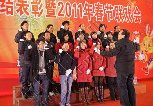 1月24日,宜昌市新豐機(jī)電設(shè)備制造有限公司董事長(zhǎng)張本新攜夫人在表演文藝節(jié)目。當(dāng)天,該公司舉行表彰和聯(lián)歡會(huì),400多名公司員工和家屬歡聚一堂,喜迎新年的到來。